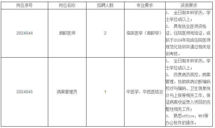 (二)应聘医师岗位人员需取得执业医师资格证书,取得住院医师规范化培训合格证书。